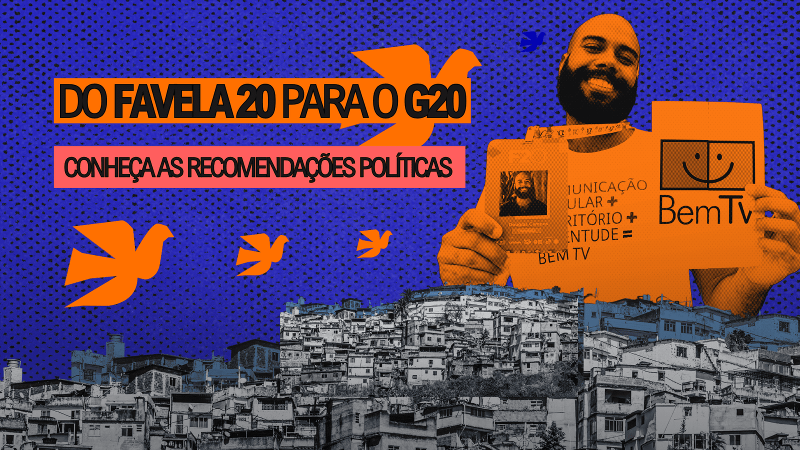 “Fazer parte do F20 e ter vivenciado o lançamento das recomendações políticas no dia 4 de novembro, “Dia da Favela”, tornou esse momento especial e histórico. Principalmente por essa iniciativa ser liderada por pessoas faveladas e periféricas do Rio de Janeiro. Participei do Painel 1: Desafios locais, respostas globais, onde pude falar um pouco como assistente social da BemTV, atuando com adolescentes e jovens periféricos dos territórios de Niterói, São Gonçalo e Pavuna e o quanto as recomendações caminham diretamente na concretização dos direitos destes. Foi incrível perceber a força e potência do coletivo na criação das recomendações políticas nos grupos de trabalho”, reiterou Douglas Campos.