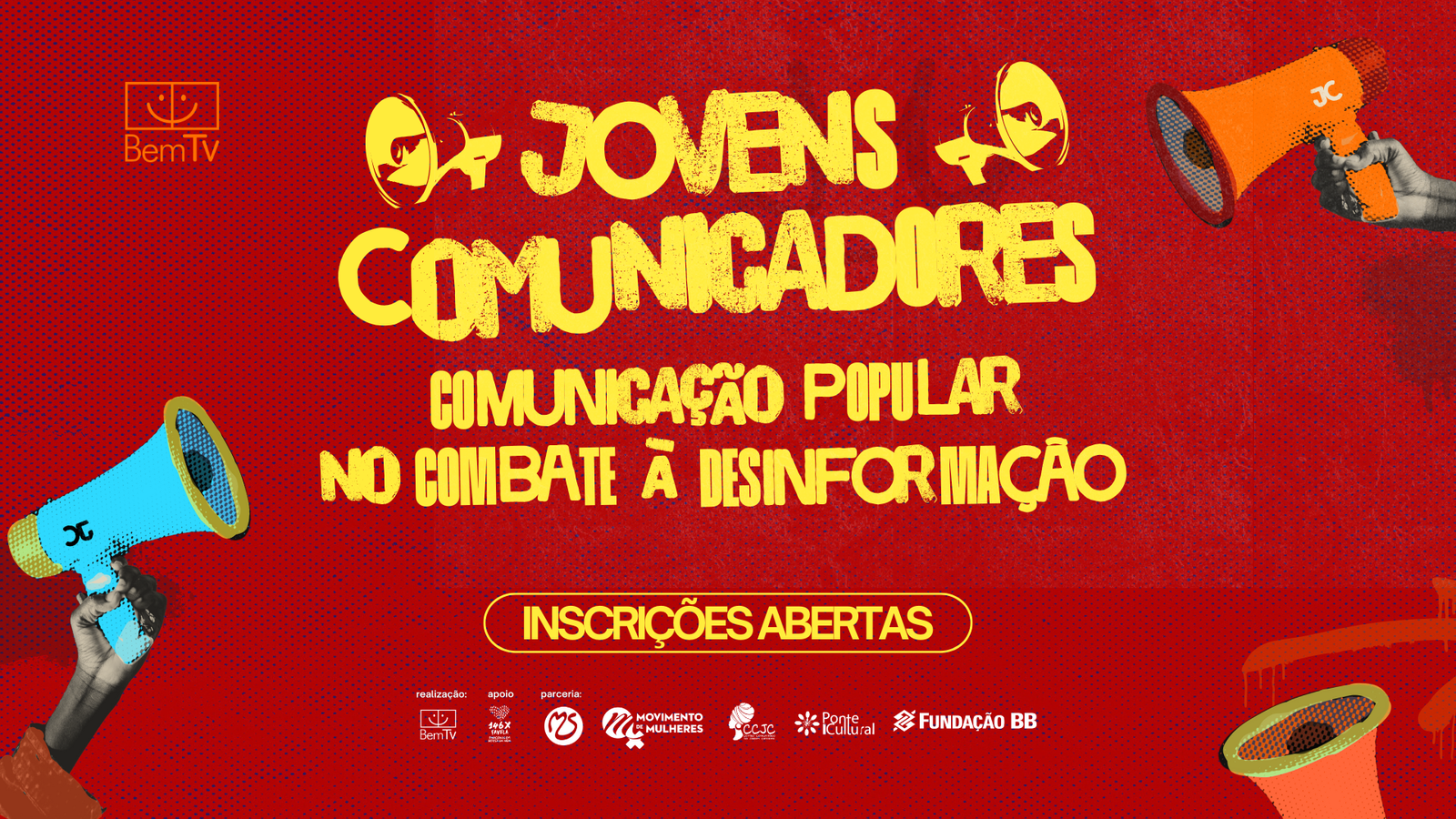 O projeto Jovens Comunicadores é uma ação da BemTv com apoio do Plano Integrado de Saúde nas Favelas, em parceria com Centro Comunitário Jardim Catarina, Movimento de Mulheres de São Gonçalo e Coletivo Ponte Cultura e Fundação Banco do Brasil.