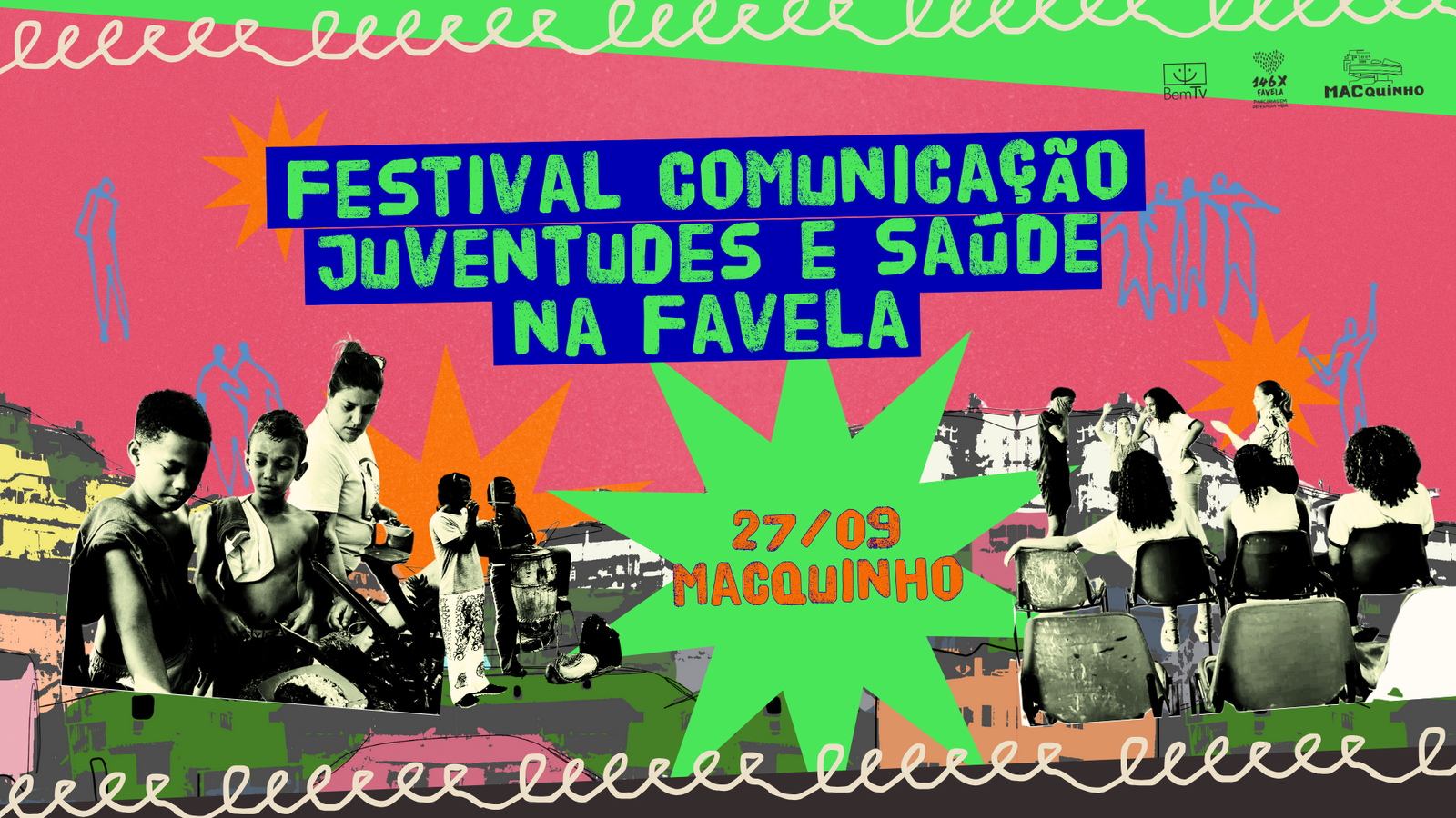 No dia 27/09, a partir das 13h, acontece o Festival Juventudes Comunicação – Saúde na Favela, no Macquinho, em Niterói.